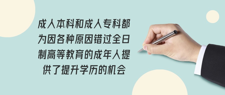 总之,成人本科和成人专科都为因各种原因错过全日制高等教育的成年人提供了提升学历的机会,对于个人的职业发展、自我提升等方面都有着积极的作用,能帮助人们避免因学历限制而错失一些机会,让他们在就业、考证、晋升等方面拥有更多的选择和可能。